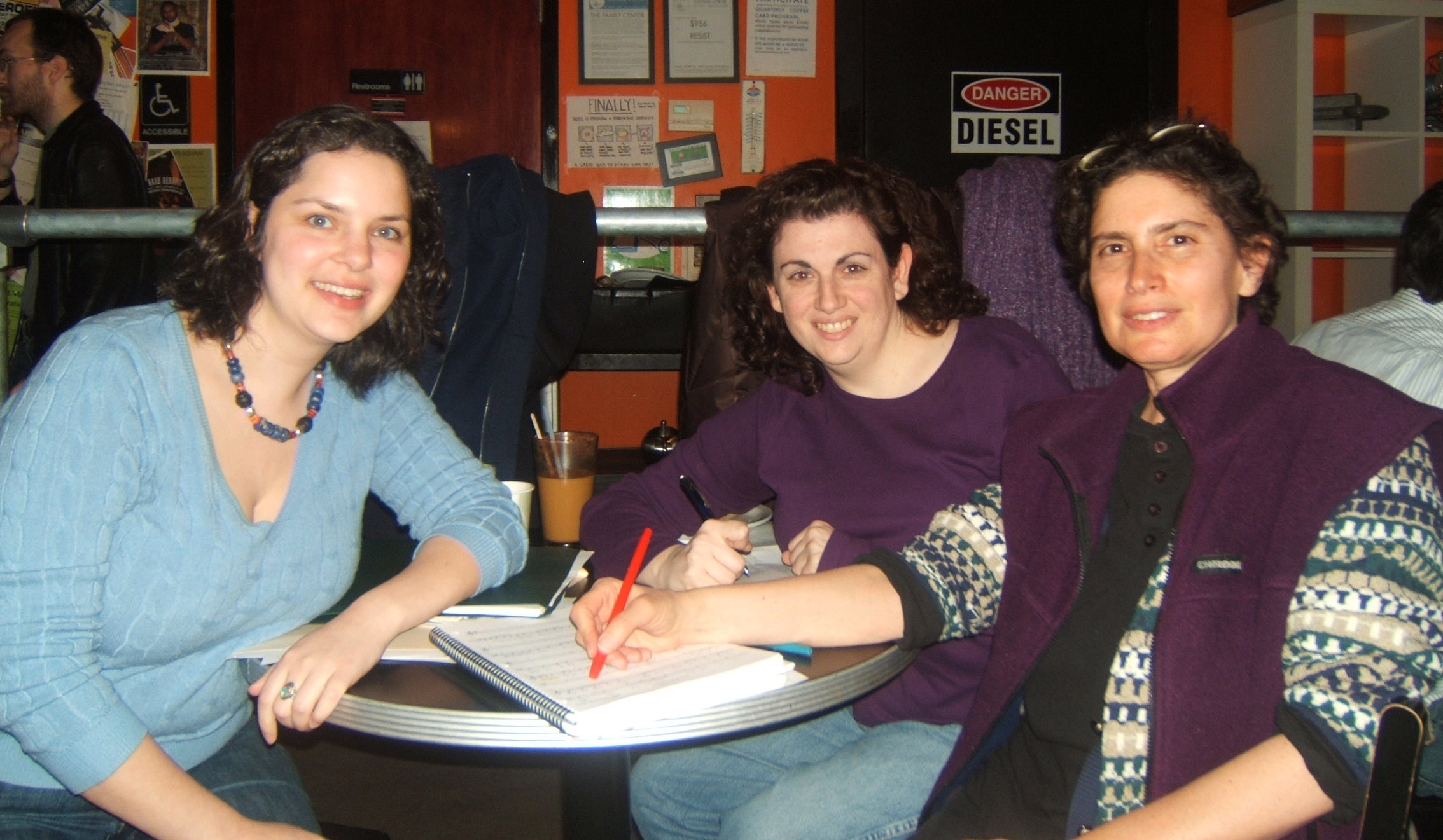 Rebecca Booth-Fox (music director), Jennifer Vento (director), and Terry Crystal (composer, lyricist, and producer) meet at the Diesel Cafe to plan production.